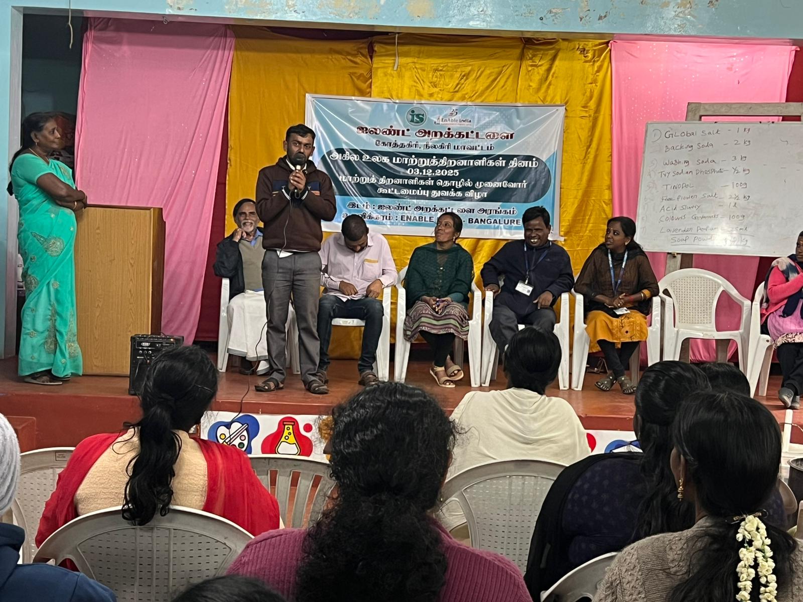 gallery Tribal exposure camp from hindustan College of arts and science, Chennai 30.09.-06.10.2025 - Kotagiri Diwali celebration 23.10. + 25.10.2025 - Ooty, Gudalur 40th anniversary DIFFERENTLY ABLED PERSONS SKILL TRAINING 07.10.-15.10.2025 - KOTAGIRI World differently-abled persons (DAPs) Day celebration and inauguration of 'Dap's micro entrepreneurs federation' 03.12.2025 at island trust auditorium - kotagiri Training for differently-abled persons on preparation of sanitary and washing materials self-employment - Kotagiri
